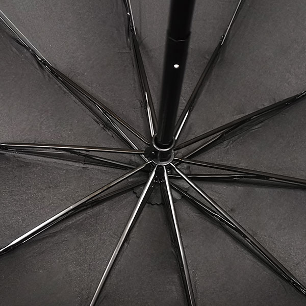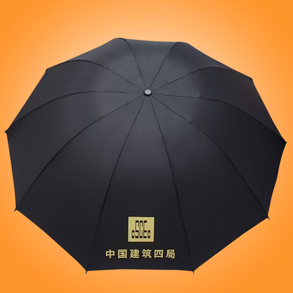 25寸10骨三折雨傘,傘面金色絲印對稱,傘架加粗傘骨烤漆工藝不生銹。