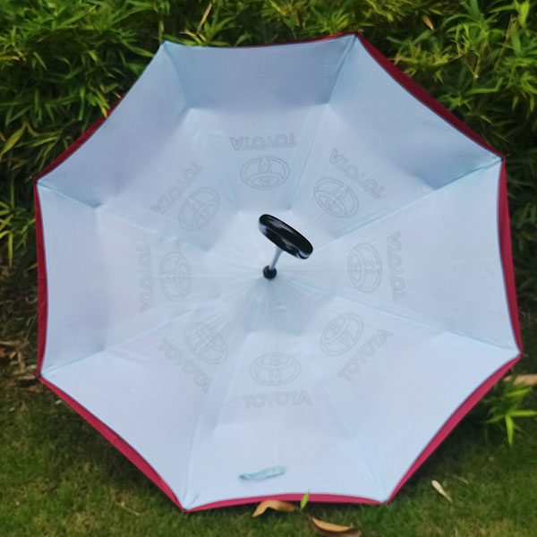 反向汽車廣告雨傘,傘面高密度防水布料,內(nèi)層采用打孔沖壓logo工藝,是和有車一族使用。
