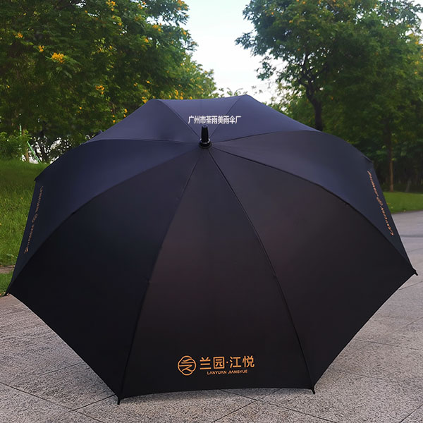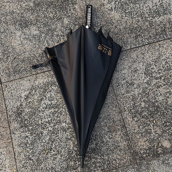 黑色碰起布、高密度防水處理、傘面兩個logo對稱絲印、海綿手柄防滑耐用。