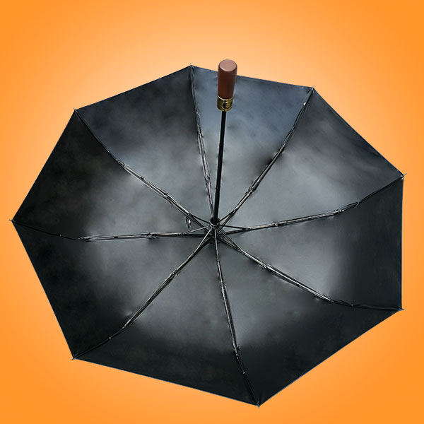 精致木手柄搭配黑膠全遮光碰擊布面料,三折烤漆電著傘架防生銹處理,伸展直徑106cm,